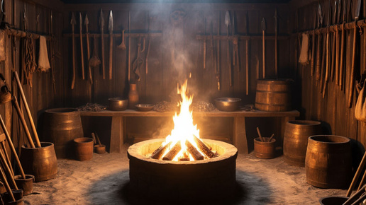 Кузница Кузница Коваля — не огромная пещера с водяным молотом. Это низкая, дымная землянка с горном, выложенным из камней. Воздух густой от угля и пота. Именно здесь, в тайной кузне, кузнецы рода Огнищан веками ковали оружие для Стражей. Не просто мечи, а клинки, закалённые в духе мастера...