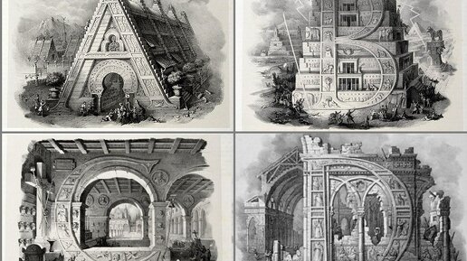 Итальянский художник Антонио Базоли (Antonio Basoli), живший на рубеже XVIII - XIX веков, создал серию интереснейших гравюр "Живописный алфавит" (Alfabeto Pittorico), с изображением алфавита, сделанного в виде архитектурных памятников разных исторических периодов, которую представил в 1839 году. Каждая литография представляла собой отдельную букву, выполненную в виде того или иного памятника архитектуры. Всего в альбом вошли 25 букв латинского алфавита. Монохромные изображения полны сложных деталей...