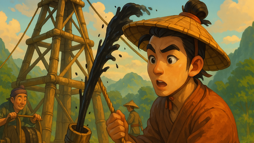 Окей, забудьте всё, что вы знали о нефти. Не Рокфеллер, не Техас, не чёрное золото 19 века. А теперь внимание: 347 год нашей эры, Китай, провинция Сычуань — бурят нефть. Серьёзно. Причём не просто ковыряют землю, а строят полноценную буровую установку. Из бамбука. Сказать, что это удивляет — ничего не сказать. Это как если бы выяснилось, что викинги запускали ракеты, а египтяне делали TikTok. Древние китайцы называли нефть «огненной водой». И знали: если достать её из глубины земли — будет тепло, светло, и можно всякие штуки делать...