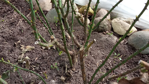 Вчера был довольно тёплый день и настала пора обрезать розы. Зимой было очень много снега, мой тоннель, по которому бегать можно, в одном месте провалился! И немного розы поломало. Но это вообще не принципиально. Всё бодрое и зелёное. Но немного гнилое кое где. Меня часто спрашивают, как обрезать розы. Но объяснить это невозможно. Основной принцип примерно такой - у взрослых флорибунд и чайников оставляется высота примерно 20-25 см, при этом всё кучные разветвления обрезаются. То есть разветвлений остаётся по минимуму...