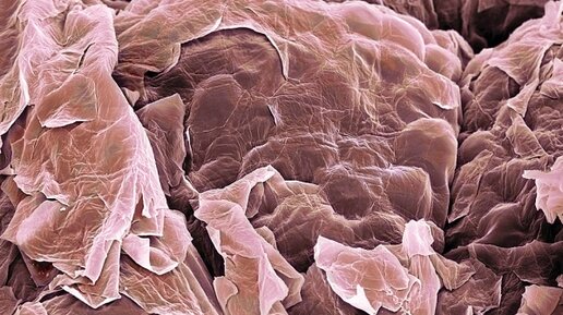 Вы когда-нибудь задумывались, как выглядит на самом деле кожа? а особенно кожа лица? Кожа состоит из нескольких слоев, и самый верхний Эпидермис представлен на фото выше. Эпидермис в свою очередь также состоит из нескольких слоев: на поверхности с воздухом соприкасается роговой слой (верхний слой эпидермиса). Под воздействием солнца, ветра, и других факторов роговый слой грубеет и утолщается. Если мы не ухаживаем за кожей лица: не увлажняем должным образом, не питаем, то вот эти самые чешуйки просто встают "колом"...