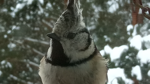 Чубатая Сініца. Хохлатая Синица. Parus cristatus. Гренадёр. Певчая птица, размером заметно мельче воробья. Самый запоминающийся и заметный издалека отличительный признак - хохолок. У самцов он чуть крупнее, чем у самок. Но различать пол по этому признаку бесполезно - угол наклона и высота этого украшения меняются в зависимости от настроения его обладателя. Пение хохлатки весной - длинные трели. Летом и зимой звучат как "ци-ци-трру", между собой птицы общаются короткими "ци" или мягкими "сии"...