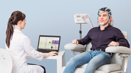 Электроэнцефалограмма (ЭЭГ)— графическое изображение сложного колебательного электрического процесса, который регистрируется при помощи электроэнцефалографа при размещении его электродов на мозге или поверхности скальпа, результат электрической суммации и фильтрации элементарных процессов в нейронах. Рутинные ЭЭГ-обследования проводятся в поликлинниках, в отделениях функциональной диагностики и неврологических отделениях. Длительность обследования составляет от 5 до 30 минут в зависимости от цели исследования, предварительного диагноза и проводимых в ходе обследования функциональных проб...