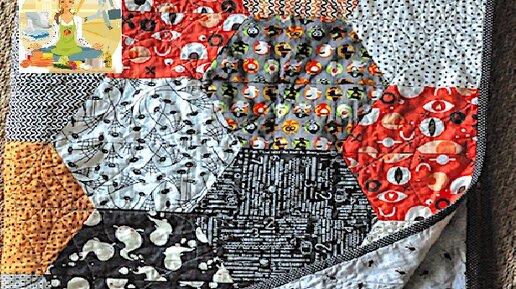 Если помните, я обещала продемонстрировать несколько способов соединения шестиугольных фигур (в народе - хексагоны) в лоскутное полотно. Ссылки на публикации, где обьясняются первые два способа - в конце статьи. А сейчас расскажу как просто шить изделия лоскутного шитья из блоков - шестиугольников без необходимости преодолевания Y-образного шва. Для этого понадобится или линейка на 60 градусов (в идеале) или шаблон половинки шестиугольника - четырехугольника с двумя острыми углами. Вот так выглядит этот шаблон...