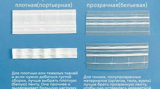 🔹 Прозрачные шторные ленты – чаще всего используются при пошиве тюля (легких тканей: микросетка, сетка, вуаль, органза, микроорганза, под лен и т...