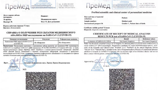 TestNaVirus.com4 года назадПодписатьсяМеждународная справка об отсутствии коронавируса для выезда за границуСправка на русском и английском языке с QR-кодом, которая точно подойдет для международных перелетов. Сделать можно здесь
