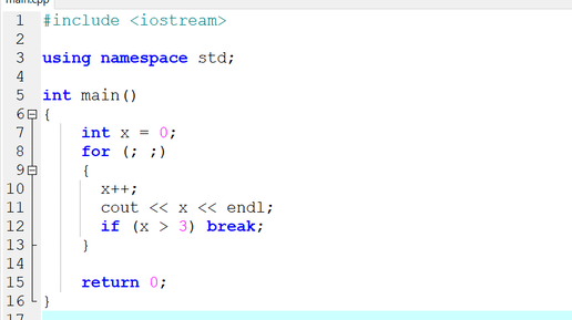 Думаю, что даже начинающие программисты знают, что такое цикл for и как его использовать. Но на всякий случай напомню. Синтаксис такой: for (Инициализация; Условие; Счётчик) { Тело цикла; } Пожалуй, это одна из немногих фишек языка С++, которая мне ну прям сильно нравится. Здесь мы “в одном флаконе” и переменную инициализируем, и условие определяем, и счётчик циклов запускаем. Эта конструкция впоследствии перекочевала из С/С++ во многие другие языки, потому что является действительно удачной. Но ближе к делу...
