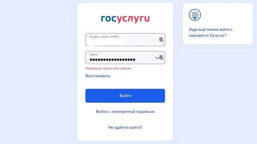Если вы уверены, что вводите правильный логин и пароль, значит, вы попали под автоматическую блокировку от Госуслуг. Но пугаться этого не нужно. В середине июля Госуслуги рассылали на e-mail пользователей сообщения о необходимости сменить пароль, если он не менялся более 5 лет. Кто-то проигнорировал сообщение, кто-то — не заметил или пропустил. С 21 июля такие пользователи не могут войти в аккаунт со старым паролем. При попытке залогиниться появляется сообщение: «Неверные логин или пароль»...