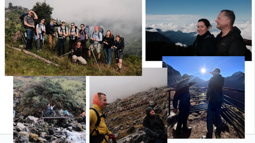 В начале октября мы были на хайкинге в Непале. Замечательно красивая страна самых высоких гор с открытыми и душевными, но очень бедными людьми. Это безусловно сильно недооцененное направление туризма - не только активного, спортивного отдыха, но и сити-тура, осмотра достопримечательностей. Мы прошли через хребты, покрытые заросшими лианами и мхами соснами, над расчерченными террасами зелеными долинами. Нас сопровождали обволакивающие на этой высоте облака и козочки, которые притворялись сторожевыми собаками и шли с нами по треку...