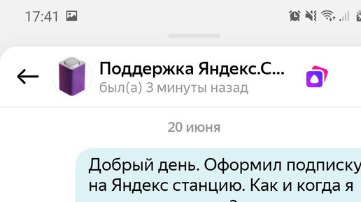 Всем привет. Хочу рассказать свою историю об оформлении подписки на Яндекс станцию. 20 июня случайно увидел рекламу, что можно оформить подписку на Яндекс станцию. Решил попробовать. Заполнил заявку, списалась первая абонентская плата, но никаких уведомлений не пришло. Написал в службу поддержки, чтобы узнать что и как: Ждать пришлось долго. Сроки доставки озвучили 3 июля, дата меня не устроила, потому что не намерен платить деньги за пользование услугой, которую не получаю: Решил отказаться от подписки: Пишу 23 июня...