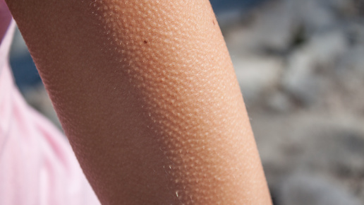 Фолликулярный кератоз — маленькие бугорки на поверхности кожи, которые появляются из-за избыточной выработки кератина, который закрывает выходные отверстия волосяных фолликулов. «Гусиная кожа» или по-научному — фолликулярный гиперкератоз - часто становится препятствием для носки открытой одежды. Обычно, эти красные точки и иногда неровный рельеф можно увидеть на плечах и бёдрах.