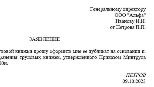 Дубликат трудовой книжки - образец заполнения 2023-2024