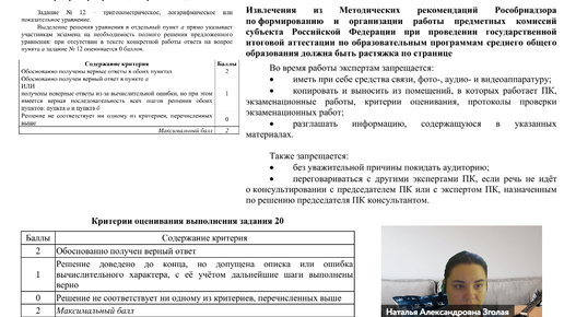 Когда подходит время решать вторую часть на моих уроках, я всегда рассказываю о правилах, которые устанавливаются для экспертов. Это очень сложная и ответственная работа. Показываю, что ребятам только 4 часа писать экзамен, а эксперты в таких же условиях работают часто с утра и до позднего вечера. И почерк, оформление, аккуратность на странице имеют огромное значение. 1. Уравнение № 20 в ОГЭ и № 12 в ЕГЭ по математике не бывает очень сложным. В ОГЭ уже не первый год повторяются все типы заданий и...