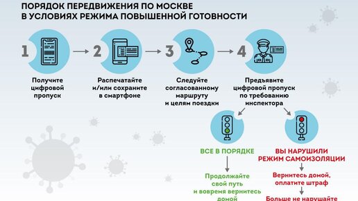 ❗️Схема получения цифрового пропуска Возможность нахождения граждан вне места проживания (пребывания) и передвижения с использованием транспортных средств (в том числе транспорта общего пользования, включая железнодорожный транспорт и метрополитен, легковых и грузовых транспортных средств) подтверждается: 🔹Цифровым пропуском для передвижения по территории города Москвы (далее – цифровой пропуск), оформляемым в соответствии с настоящим Порядком, при предъявлении документа, удостоверяющего личность...