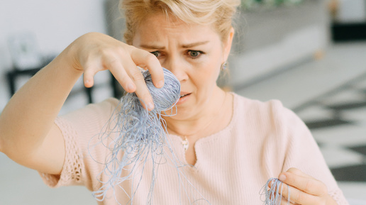 С проблемой распущенности сталкивается каждая вязальщица. Нет, это не то, что вы подумали!))) Я о проблеме пряжи, что превращается в кудрявую лапшу после того, как вы, по какой-то причине, решили распустить изделие. Нитки нынче дорогие и не всегда можно себе позволить вязать только из новой пряжи. Даже если вы попробуете связать образец из пряжи которая уже была изделием, скорее всего он вам не понравится. Петли будут «плясать», и после стирки-отпаривания это не пройдет...