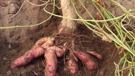 У каждого, кто слышит о батате, сразу возникает ассоциация – «сладкий картофель». Бесспорно, у ряда сортов батата и внешний вид, и вкус несколько напоминают картофель. Хотя, на самом деле, они относятся к совершенно разным семействам. Картофель – к семейству пасленовых, а батат – это многолетнее клубненосное растение семейства вьюнковых. Сорта батата делятся на кормовые, овощные и десертные. Где выращивают Фото: Цветок батата Размножение Посадку выращенной рассады производил после 15 мая, когда почва уже достаточно прогрелась...