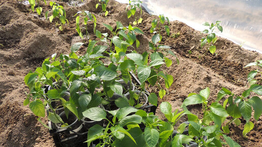 По два и по одному перцу в лунку. Высадка рассады перца в теплицу. Что положить в лунки к перцу.