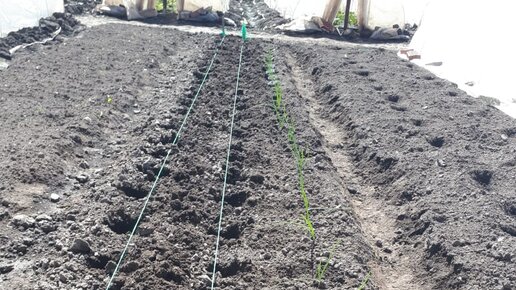 Добрый день, дорогие садоводы и огородники! На следующей неделе планирую высадить рассаду лука эксибишен на грядки и сейчас подробно расскажу, как я это делаю. Часть рассады я выращиваю с пикировкой, а часть без неё. Конечно удобно, когда лук распикирован по 200 г стаканчиками, корневая система закрыта и лук очень быстро приживается на новом месте Грядки перекапываю на глубину штыковой лопаты, ровняю граблями. У меня получаются грядки 80-90 см в ширину и 10 м в длину. Размер грядки может быть любой, как вам удобно...