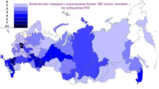 Количество городов России с населением более 100 тысяч, 500 тысяч человек. Сколько их?