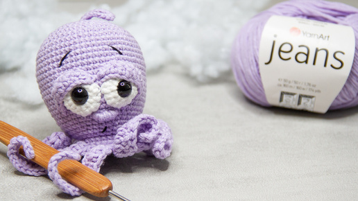 Здравствуйте, друзья! Меня зовут Марина и с вами снова канал «Что вижу, то вяжу». Сегодня хочу предложить вам связать очаровательного осьминога крючком. Игрушка не сложная, справятся и опытные мастерицы и те, кто пока ещё только осваивает вязание игрушек-амигуруми. Итак, осьминожка Крошка. Почитать про этих милых существ можно у меня на канале . Связать такую игрушку можно тоже у меня на канале, прямо здесь 😁. МАТЕРИАЛЫ И ИНСТРУМЕНТЫ Для вязания одной осьминожки мне понадобилось 20 грамм пряжи от ЯрнАрт Джинс (160 м в 50 гр), цвет – нежно-сиреневенький, номер 89...