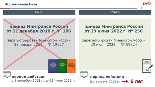 С 01 августа 2022 вступили в действие Новые ПТЭ ЖД РФ 2022 - Правила технической эксплуатации железных дорог Российской Федерации, утвержденные приказом Минтранса России № 250 от 23.06.2022. Далее кратко изложены изменения в ПТЭ РЖД 2022 в сравнении с ПТЭ РЖД 2010...