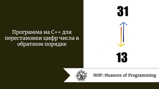 Источник: Nuances of Programming В этой программе будем получать от пользователя число и переставлять цифры этого числа в обратном порядке. #include <iostream> → непрерывный поток байтов данных ввода-вывода. using namespace std; → используется для хранения имени переменной. int main() → возвращает функцию типа данных. int n, reverse = 0, rem;