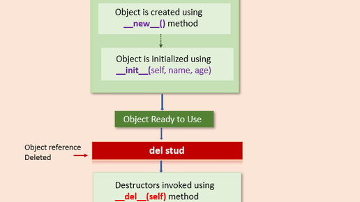 (часто спрашивают на собеседованиях) Этот магический метод позволяет определить поведение экземпляра пользовательского типа при готовности интерпретатора уничтожить его. Многие думают, что del x вызывает метод x.__del__. Это неправда. Python использует механизм подсчета ссылок, и del x – лишь один из способов уменьшить количество ссылок на 1. 📎 Примеры. Определим такой класс, где будем следить за вызовом его метода __del__: class Bazooka: def __del__(self): print('Bazooka.__del__()') >>>...