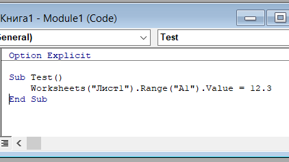 Свойство Range (Диапазон) возвращает объект Range, и имеет несколько вариантов синтаксиса. 1. объект.Range(ячейка1) 2. объект.Range(ячейка1, ячейка2) Свойство Range может быть применено к объектам Worksheet (Рабочий лист) и Range. Параметры (ячейка1 и ячейка2) определяют диапазон. Примеры использования свойства Range: 1. Задание значения 12,3 в ячейку A1 на листе "Лист1" активной рабочей книги: Worksheets("Лист1").Range("A1").Value = 12.3 Обратите внимание, что в коде строки используем точку вместо запятой, а в ячейке А1 будет 12,3...