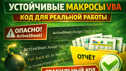 Макрос, который не ломается: как сделать VBA-код устойчивым, понятным и готовым к кнопке запуска. Разбираем, как улучшить макросы Excel: автоматические имена листов, устойчивый код VBA, отказ от жёстких ссылок и подготовка к запуску одной кнопкой. На прошлых шагах мы сделали многое: — фильтруем данные