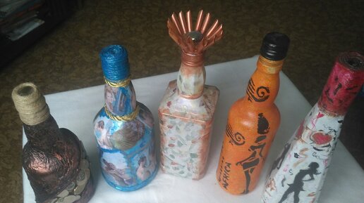 Превратить бутылку или вазу в необычный подарок можно при помощи различной техники: росписи, декупажа, переноса фотографий, трафаретов и использования различных предметов декора. Вкратце расскажу обо всех, а подробнее - о самом необычном - переносе фотографий. В каждом случае поверхность нужно обязательно обезжирить - спиртом, ацетоном и т.д. "Денежная бутылка" - вам нужны бумажные полотенца, клей ПВА, старая ненужная молния, монетки, бронзовая краска и холщевая веревка. Первым этапом приклеиваем молнию - раздвинув ее, но, соединяя концы вместе, внизу они соединены "собачкой"...