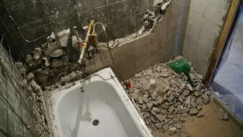 Правильно... удаляем ванну для замены (образовалась дыра в стене)