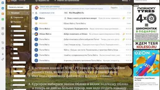 Почта mail.ru Как работать в Облако Закачивать файлы в память Облако.