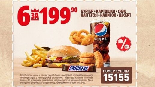 Забираем Комбо 6 за 200р в Burger King Приходим в бургер кинг и говорим "Дайте комбо 6 за 200 по коду 15155" В комбо входит всё что изображено на картинке выше