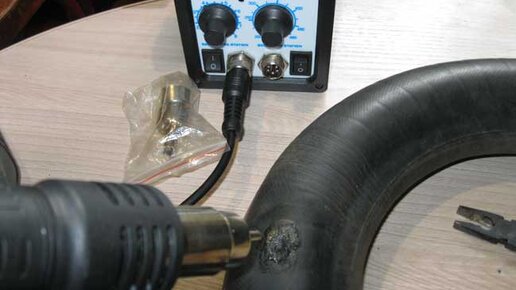 Неделю назад на садовой тележке спустило колесо, накачал к вечеру опять сдулось. Тачка старенькая пара новую брать, но и эту жалко выкидывать решил починить. Разобрал колесо, осмотрел камеру, на вид повреждений нет. С помощью ведра воды нашёл небольшой прокол примерно 1-1,5 мм. Заклеить такую махонькую дырочку, да нет проблем только одно, слышал, что китайские камеры не клеятся. Была, не была надо попробовать, может моя не такая. В ход пошла велоаптечка, через полчаса, когда заплатка подсохла, от поддевания ногтём с лёгкостью отвалилась...