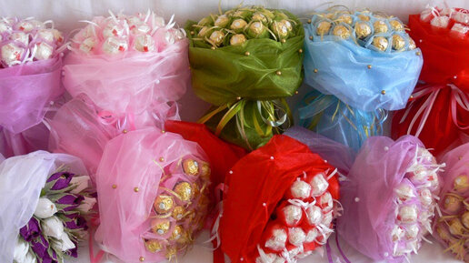 Как сделать букет из конфет в органзе своими руками?