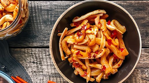 Маринованная редька дайкон — это традиционная китайская закуска с насыщенным вкусом и хрустящей текстурой. Этот сочный корнеплод встречается в супах, жареных блюдах и даже десертах. Но особенно популярен он в маринованном виде: такая закуска придает блюдам яркость и пикантность. Готовый маринованный дайкон можно купить в азиатских магазинах, но домашний вариант получается вкуснее и полезнее. В этой статье разберем, как замариновать редьку дайкон своими руками и где её можно использовать...