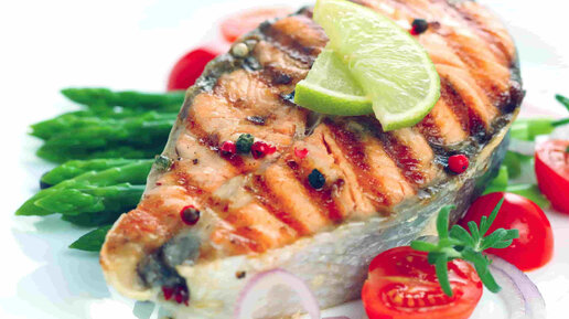 ИНГРЕДИЕНТЫ: · семга (стейк) – 4 шт. Для маринада: · соус соевый – 100 мл · перец белый свежемолотый – по вкусу · имбирь молотый – 1/2 ч. л. · масло растительное – 2 ст. л. · сок лимонный – 1 ч. л. · вино белое сухое – 1/2 стакана ПОШАГОВЫЙ РЕЦЕПТ ПРИГОТОВЛЕНИЯ: - Смешать ингредиенты маринада в большой миске. - Положить в маринад стейки из семги и оставить на 15 минут. - Обтереть стейки от маринада и жарить на барбекю под крышкой 12 - 14 минут, смазывая их маринадом...