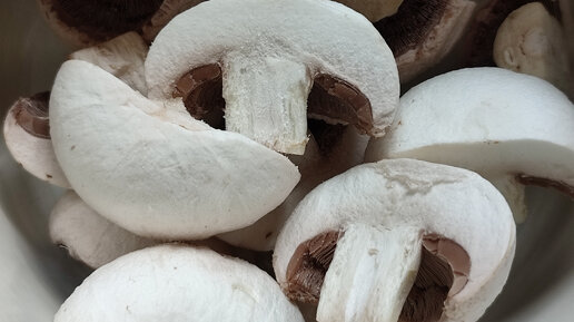 Делимся одним из рецептов маринада Нам понадобится: Готовимся заранее: 1. Чистим шампиньоны — шляпку и ножку. Обычно грибы я не мою, чтобы не впитывали излишнюю влагу, но в этот раз было много земли, поэтому чуть сполоснула холодной водой шляпки сверху, все остальное сняла ножом при чистке и выкладываем на бумажное полотенце для просыхания. Если грибы крупные, разрезаем каждый на 2 части: 2. Чеснок чистим, пропускаем через пресс в небольшую тарелку / блюдце и оставляем подышать минимум 5 минут: Подготовка...