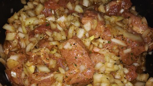 Когда мы быстро собираемся на пикник или же спонтанно решаем приготовить шашлыки, можно конечно купить уже готовое замринованное мясо в магазине. Но не всегда можно быть уверенным в его качестве, поэтому я рекомендую вам, мариновать мясо для шашлыка, как я в минералке. Оно маринуется минимум час и можно его сразу готовить. Итак, надо положить как можно больше мелко нарезанного лука, он так же размягчает мысо и придает ему сочность и аромат...