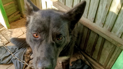 Это не собака,  это ужас летящий на крыльях ночи. Ошейник притянули донельзя! Научилась запутывать цепь. Натягивает её, вылезает из ошейника и сбежала. Вредительница вместо того, чтобы статью писать или пиццу сделать я её часа полтора по станице искала. Научилась и калитку уличную открывать. Так думаю, на ручку лапой нажала и пошла гулять.  Я домой зашла нет её. -Пойду в центр за ней. Следы видела в ту сторону ведут. Это я Сергею. -Я ей устрою когда явится! Вышла почти полпути одолела. Вот она...