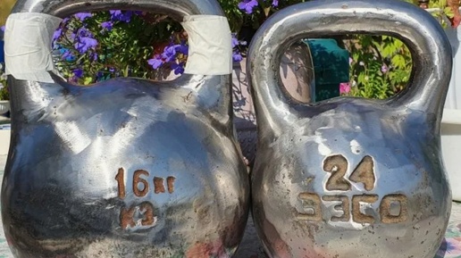 Комплекс упражнений на все тело в домашних условиях с одной гирей 16 кг и одной гирей 24 кг