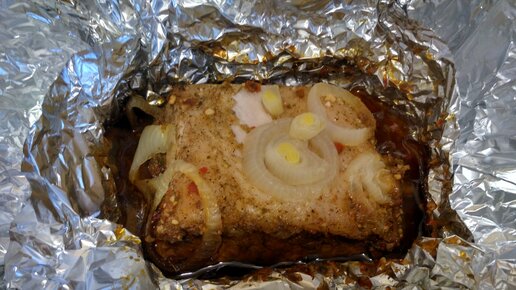 Представляю вашему вниманию простой рецепт мяса в духовке. Нам потребуется: карбонат - 500г винный уксус - 1ч.л. соевый соус - 2ст.л. оливковое масло - 1ст.л. луковица - 1шт (крупная) приправы для мяса на ваш вкус Обваливаем мясо в специях Смешиваем соевый соус, винный уксус и оливковое масло На фольгу выкладываем половину нарезанной луковицы, сверху кладем мясо(если на мясе есть сало кладем им вверх, что бы мясо получилось более сочным)...