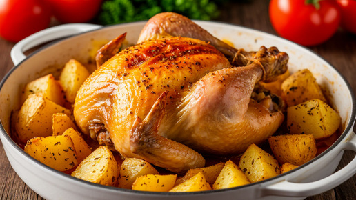 Простое в приготовлении, но по-настоящему домашнее и нарядное, оно одинаково хорошо подойдёт и для семейного ужина, и для праздничного стола. Для маринада: 1. Подготовьте курицу: Хорошо промойте тушку и обсушите бумажными полотенцами. Разрежьте курицу на кусочки или оставьте целиком (если целиком — можно сделать надрезы в грудинке и бедрах, чтобы лучше пропиталась маринадом). 2. Приготовьте маринад: В глубокой миске смешайте масло, соль, перец, паприку, травы, лимонный сок и соевый соус. Добавьте измельчённый чеснок...