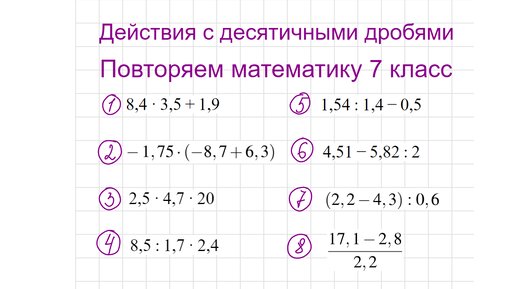 Действия с десятичными дробями. Повторяем математику за 7 класс