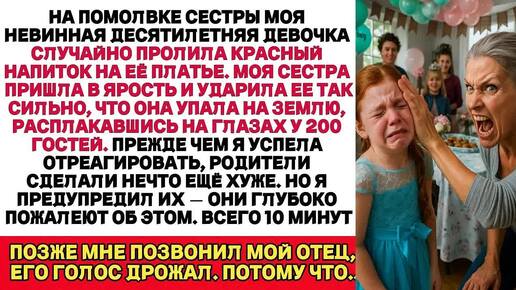 На помолвке сестры она дала пощёчину моей 10 летней дочери за то, что та пролила напиток на её платье...