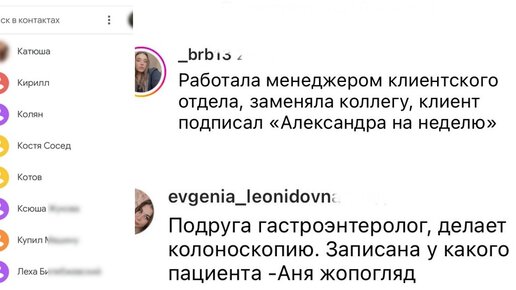 "Алиса берёт по два", "Алеся-полоскун" и другие смешные имена в контактах телефона