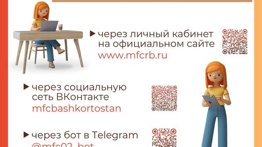 Как записаться на прием в офисы «Мои документы» ❓ Записаться возможно несколькими способами: 🔵через чат-бот в Telegram @mfc02_bot 🌐 через социальную сеть ВКонтакте 🖥 через личный кабинет на официальном сайте РГАУ МФЦ mfcrb.ru 💻 через портал Госуслуги.Башкортостан 📞 по телефонам контакт-центра +7 (347) 246-55-33 / +7 (927) 3333 100 😂🙂 Обращаем ваше внимание на условия обращения в МФЦ «Мои документы» по предварительной записи: 🥒 обращение в офис не ранее чем за 15 минут до назначенного...