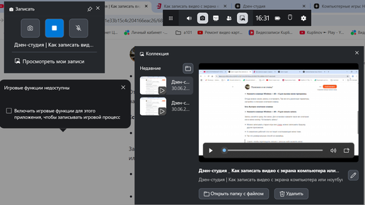 Начал дзен каналом заниматься и возникла потребность записывать видео с экрана ноутбука. Поискал, почитал нашёл несколько простых способов для записи. Почти все игры сейчас через Steam работают. Там есть встроенная запись. Во время игры надо нажать сочетание клавиш: Очень удобная вещь. Скрины также можно делать. Видео храниться в steam-е что весьма удобно. Если нужно его можно скачать в любой момент. Для быстрой записи и остановки надо нажать сочетание: Сочетания клавиш можно поменять. Они все указаны в настройках...