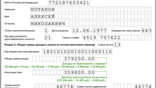 Образец заполнения справки 2-НДФЛ за 2023 год