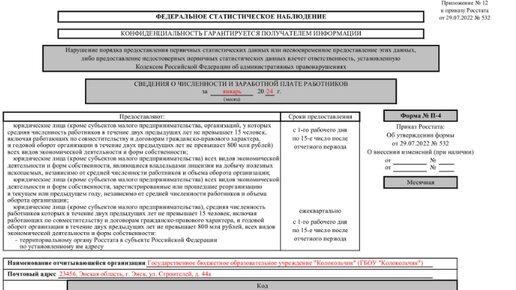 Форма П-4: как заполнить П-4 в 2024 году. Приказ Росстата 532
